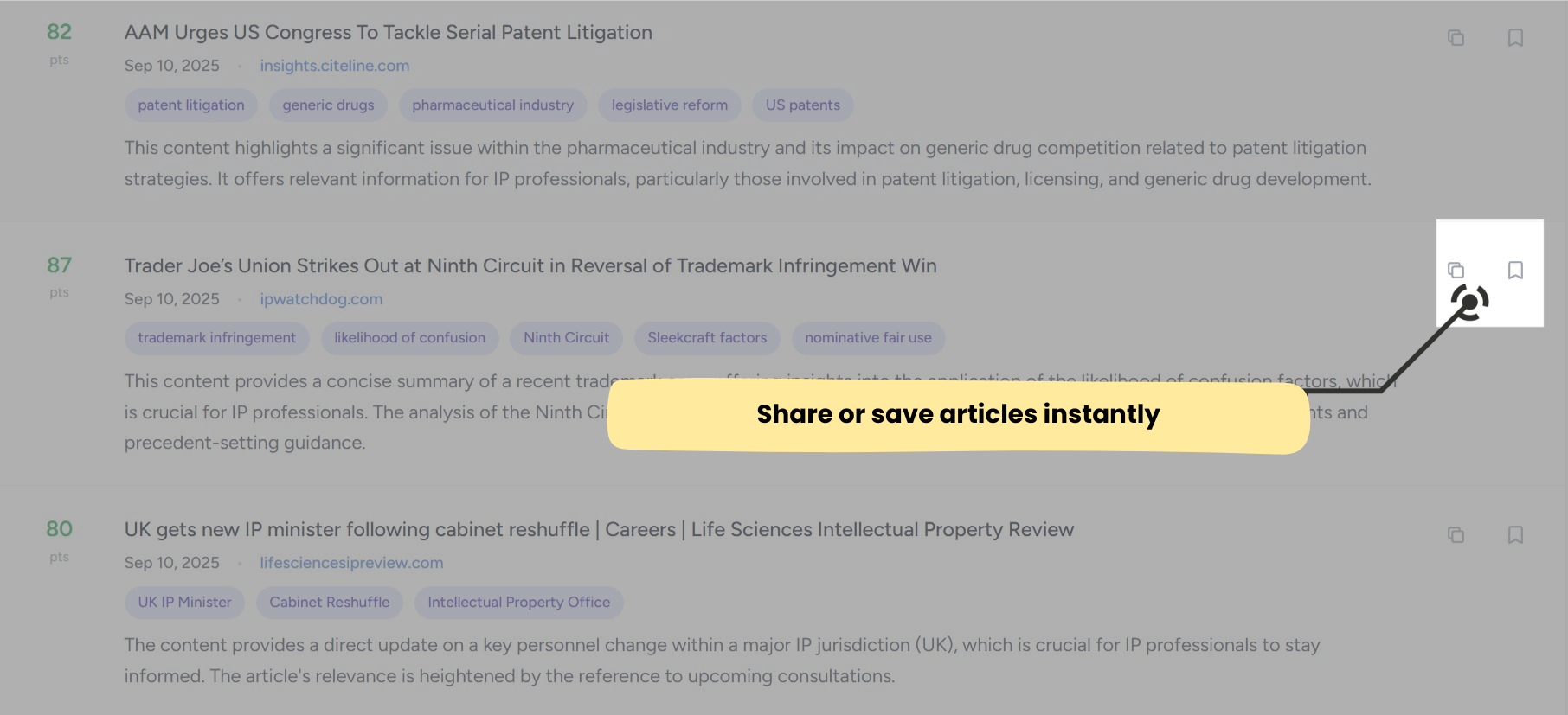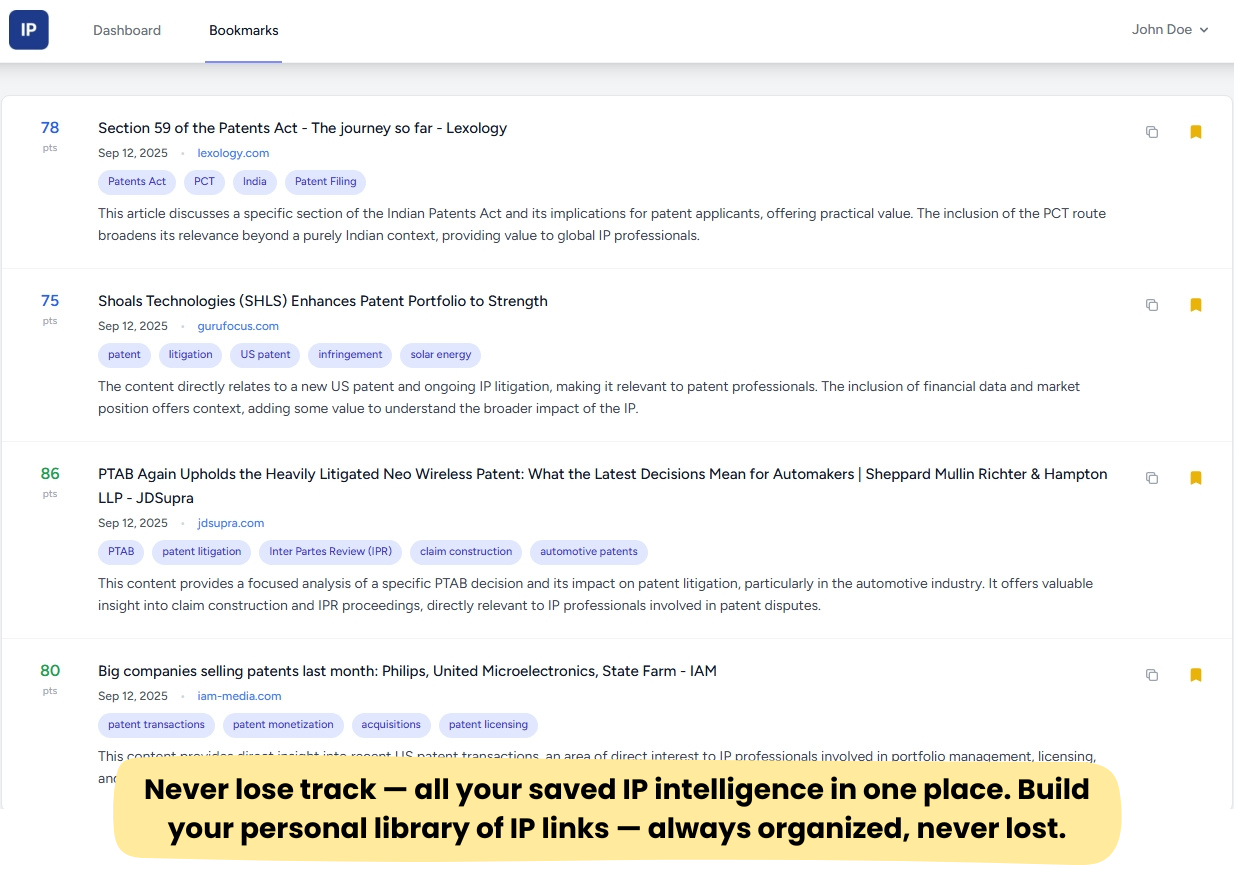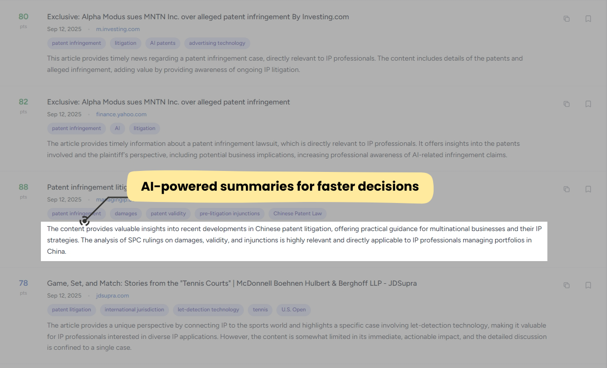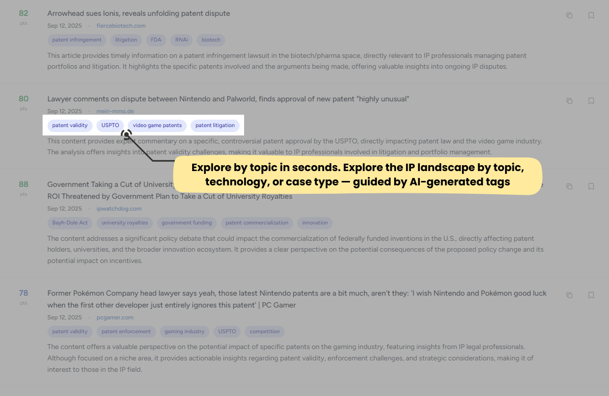 Explore how our AI-powered dashboard curates the most relevant IP updates, filters by geography, and delivers actionable insights — all in one place
